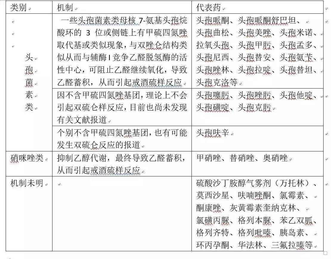 表1、可以導(dǎo)致雙硫侖反應(yīng)的******