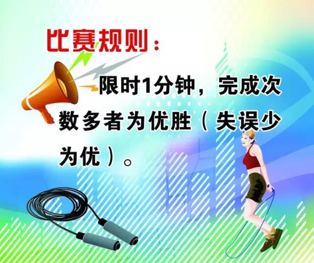 提示:比賽用跳繩自備。(專人進(jìn)行計(jì)數(shù))