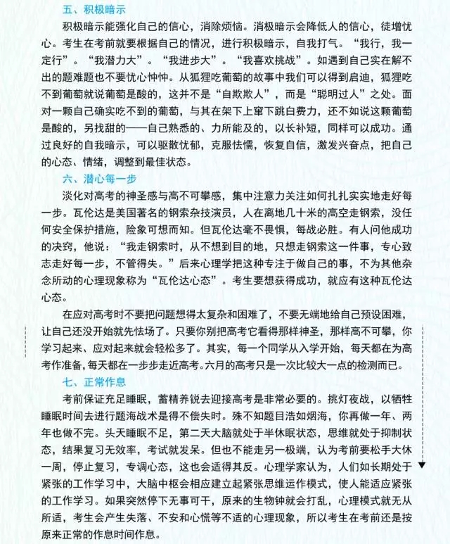 另一方面,家長也要注意避免詢問考生“考得怎么樣”等與考試相關的話題。上午或者下午考試結束后,考生不要劇烈運動,有可能的話洗個澡放松,保持適當休息。